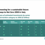A richiedere la maggior parte di investimenti è il residenziale con 785 miliardi di euro, di cui 545 destinati a interventi di efficienza energetica, seguito dal terziario con 185 miliardi. Per quanto riguarda il settore dei trasporti, sono 110 miliardi gli investimenti richiesti, da destinare principalmente alle infrastrutture: per raggiungere gli obiettivi Net Zero, si stima che dovranno essere installate 17.533 infrastrutture di ricarica e 691 stazioni di rifornimento di idrogeno.