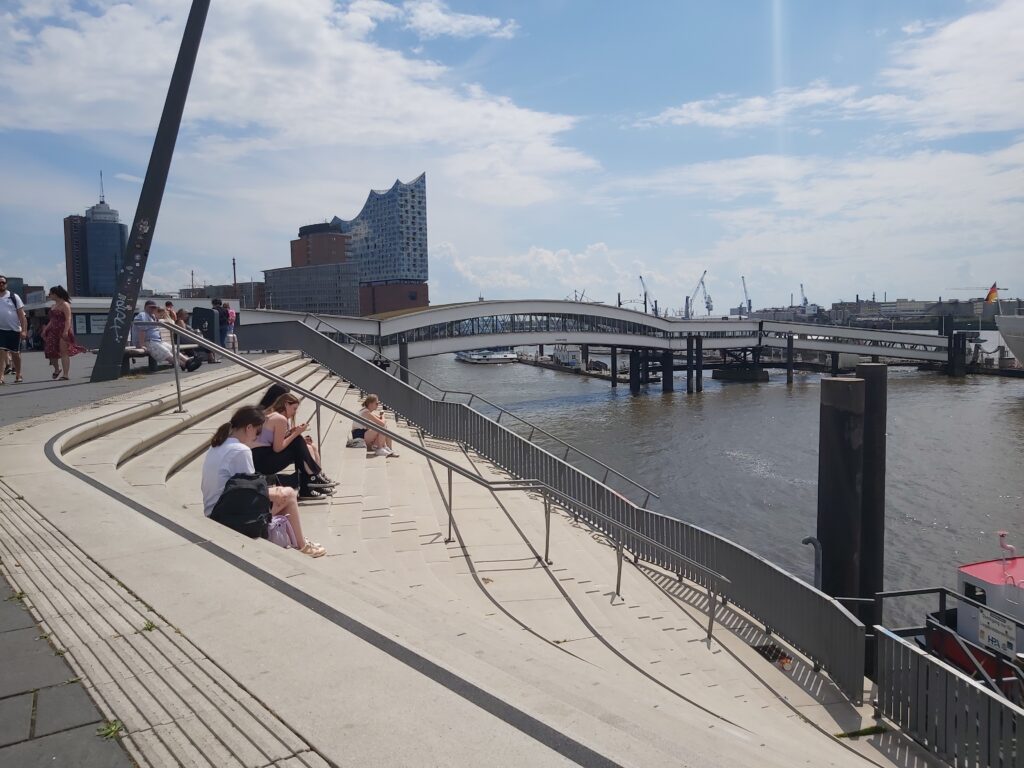 Eppure, quando si scende alla stazione della metropolitana di Baumwall, appena usciti dalla tettoia-ponte dei binari rialzati, agli occhi del visitatore si apre uno spettacolo tanto inatteso quanto affascinante: un brulichio di persone lungo le sponde dell’Elba, chi beve una birra ascoltando artisti di strada, chi fa due chiacchiere seduto sui gradoni che si protendono verso l’acqua del fiume, chi è in coda per salire su un bateau turistico; e ancora ciclisti che sfrecciano sulle ciclabili che corrono sotto i binari sospesi o lungo i molteplici canali, e cittadini che vanno e vengono dal lavoro sullo sfondo di navi portacontainer e antichi velieri, architetture anseatiche di laterizio rosso e austeri ma intriganti edifici contemporanei a definire fondali e quinte. Siamo sulla Jan Fedder Promenade, all’estremità ovest della cosiddetta Hafencity, oggetto dal 1996 di un processo di Rigenerazione Urbana che ne ha fatto una delle aree più dinamiche, innovative ed emblematiche della socialità urbana contemporanea. L’immagine-simbolo di questo processo è sicuramente l’edificio della Elbphilarmonie, famosa sala concerti progettata da Herzog & de Meuron, affacciata sul porto, nonché l’edificio più alto della città. Ma le ragioni di interesse per Hafencity vanno ben oltre il singolo landmark.