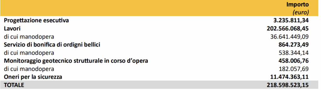 L’importo complessivo in gara ammonta a 218.598.523,15 ed è di seguito dettagliato.