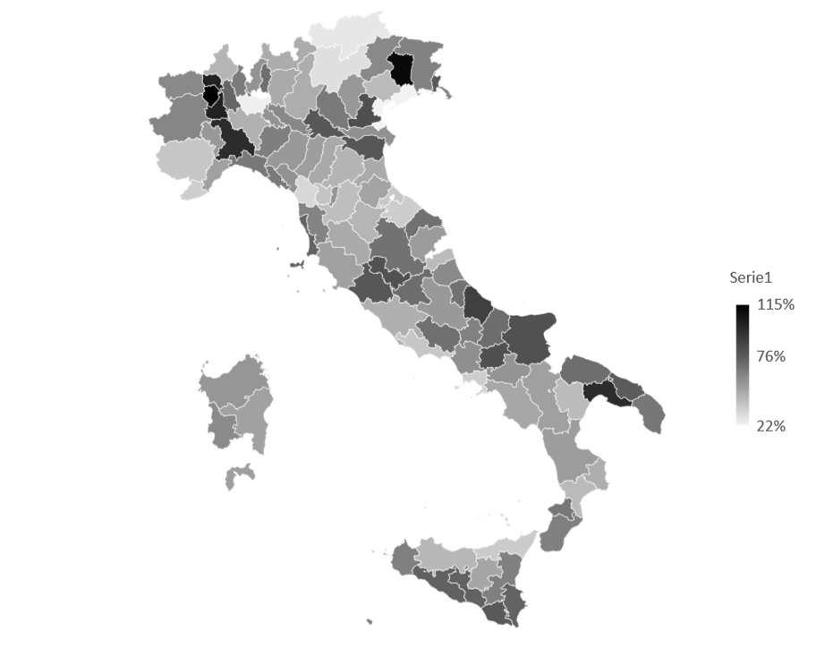 Cercando di fare chiarezza: il valore catastale delle case (la rendita moltiplicata per 1,05 e poi per 160), base imponibile per l’IMU adesso e per l’ICI prima, appare nella media italiana pari al 58% dei valori di mercato rilevati dall’Osservatorio sul Mercato Immobiliare (Agenzia delle Entrate). E fin qui nulla di malvagio: una dose di cautela è opportuna nelle tassazioni – anche se sarebbe meglio porre cautela sulle aliquote fiscali, piuttosto che sulla veridicità della misura imponibile. Ma la cosa invece “malvagia” è il fatto che, ponendo l’asticella al 58% del rapporto fra valori catastali e valori di mercato, emerge che solo ventotto città rientrano in un intervallo ragionevole intorno a questa asticella (dal 53% di Macerata e Parma al 63% di Varese). Va da sé che quarantuno città detengono mediamente valori imponibili fiscali inferiori a quanto avrebbero se il principio fosse improntato all’equità e, di controcanto, trentaquattro capoluoghi di provincia presentano valori ben superiori in tale rapporto.