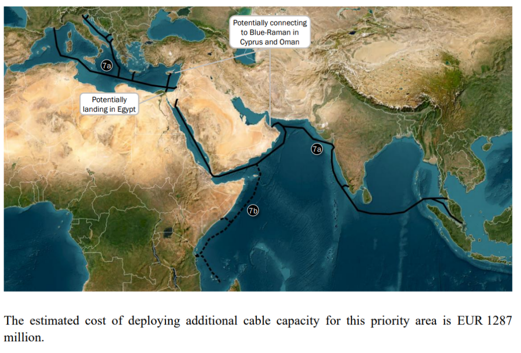 Tornando alle tredici aree, quella che include l’Italia è la 7a e rientra nel gruppone di quelle più urgenti da trattare nello stage 1. A riguardo, la stima dei costi per nuovi cavi è di 1287 milioni. L’obiettivo, si legge nel documento, è creare rotte alternative tra Europa ed Asia rispetto al Mar Rosso. E l’Italia, connettendosi con Albania, Montenegro, nell’area adriatica potrebbe garantire vantaggi strategici, soprattutto perché entrambi i Paesi sono candidati all’adesione all’Ue, rilanciando questa parte di Mediterraneo.