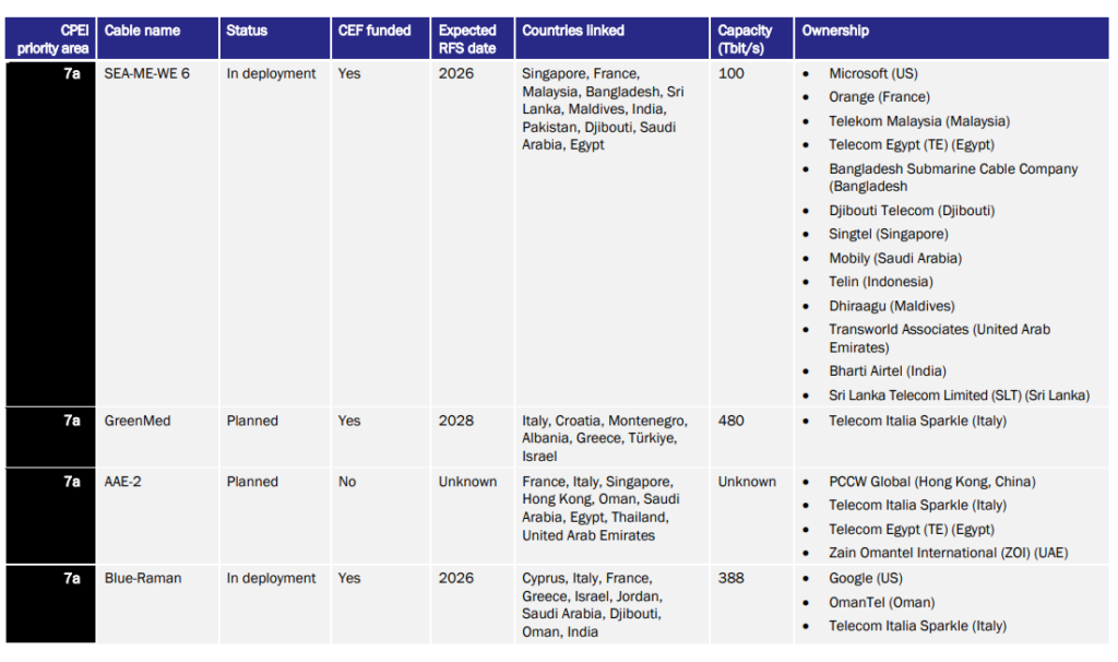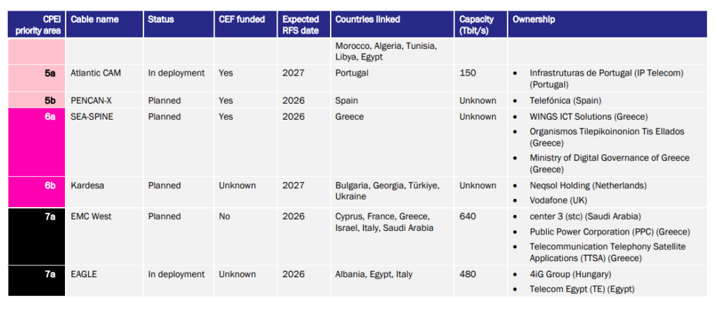 Tornando alle tredici aree, quella che include l’Italia è la 7a e rientra nel gruppone di quelle più urgenti da trattare nello stage 1. A riguardo, la stima dei costi per nuovi cavi è di 1287 milioni. L’obiettivo, si legge nel documento, è creare rotte alternative tra Europa ed Asia rispetto al Mar Rosso. E l’Italia, connettendosi con Albania, Montenegro, nell’area adriatica potrebbe garantire vantaggi strategici, soprattutto perché entrambi i Paesi sono candidati all’adesione all’Ue, rilanciando questa parte di Mediterraneo.