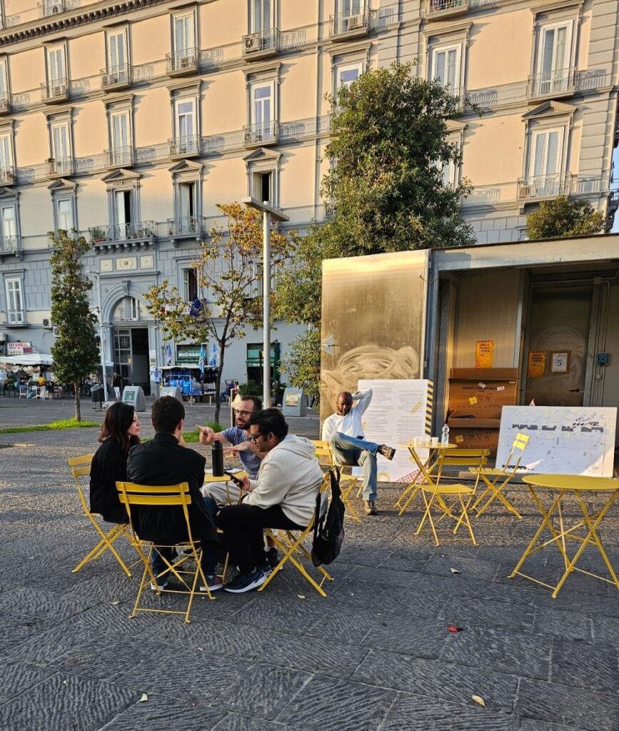 A Piazza Garibaldi siamo arrivati proprio durante la pandemia, ragionavamo con alcune realtà a noi vicine, fra cui Ambrogio Prezioso, su cosa si potesse fare per l’area. Il primo pensiero andò a Castel Capuano, l’ex Tribunale di Napoli che è un presidio chiuso alla città e agli abitanti circostanti. Si organizzano visite per i turisti e per i cittadini però in realtà è qualcosa di inaccessibile. E in quel periodo ci accorgemmo che la parte nord di piazza Garibaldi era stata completata ma non presa in carico dal Comune perché non sapeva bene come gestirla, come gestire i 7-8 chioschi che ci sono, la cavea per gli spettacoli, le aree attrezzate che vanno manutenute e curate. Quindi con il Comune è nata un’interlocuzione per capire se si potesse intervenire con una congiunta con il Comune su quell’area. Ci hanno proposto più volte un affidamento in esclusiva, ma su questo abbiamo tenuto duro perché non volevamo un affidamento in esclusiva di quello spazio, volevamo che il Comune si assumesse la sua parte di responsabilità.