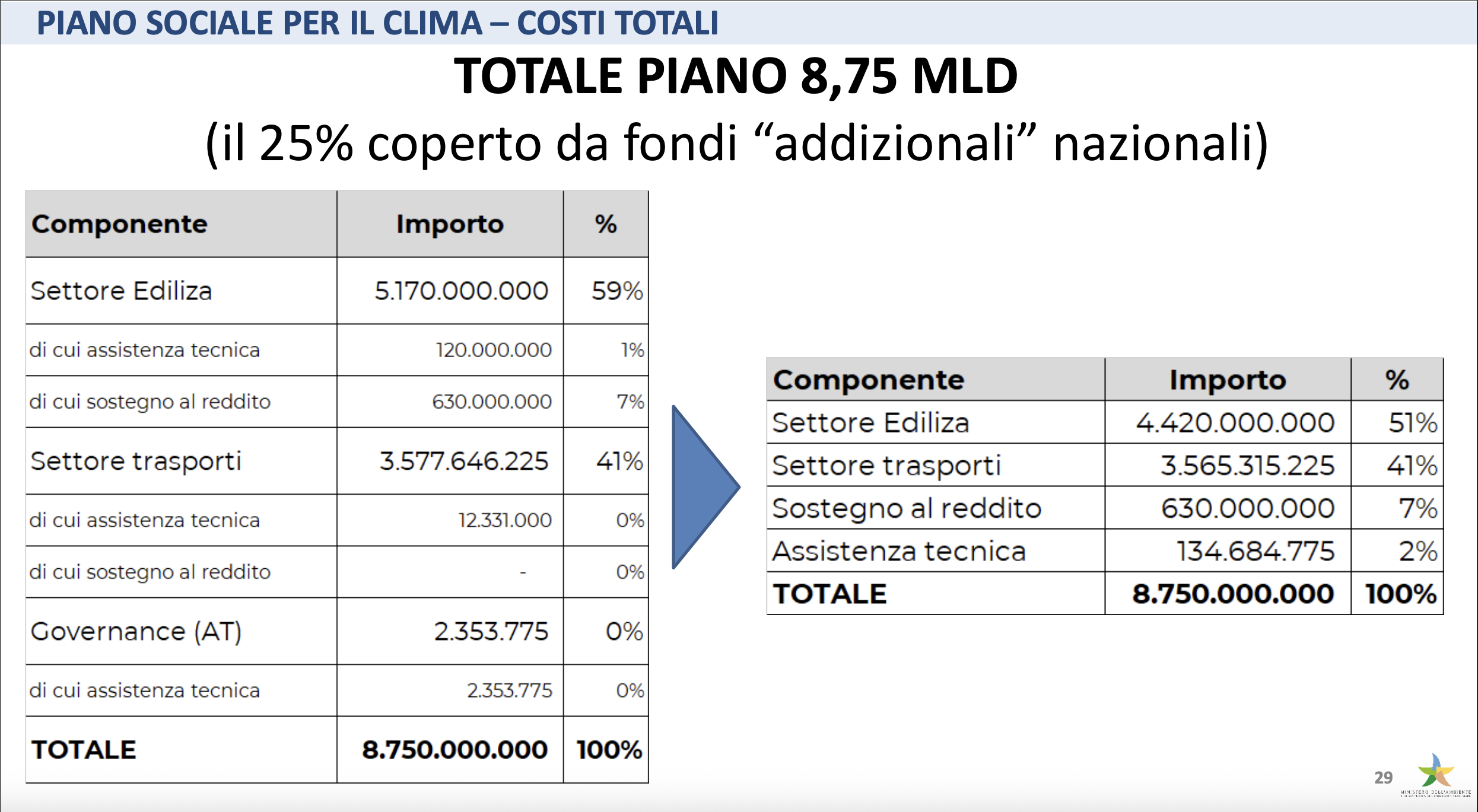 Il documento finale doveva essere consegnato il 30 giugno ma è stato trasmesso a Bruxelles il 5 agosto. Del testo, però, non si hanno tracce. L’obiettivo del fondo è supportare i più vulnerabili nella transizione energetica e attenuare gli impatti negativi del meccanismo Ets2, cioè il meccanismo di scambio delle emissioni esteso (in costi) a edifici e trasporti.