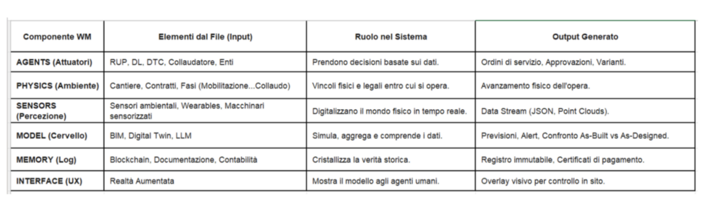 - Struttura contrattuale → World Model come analizzatore di vincoli