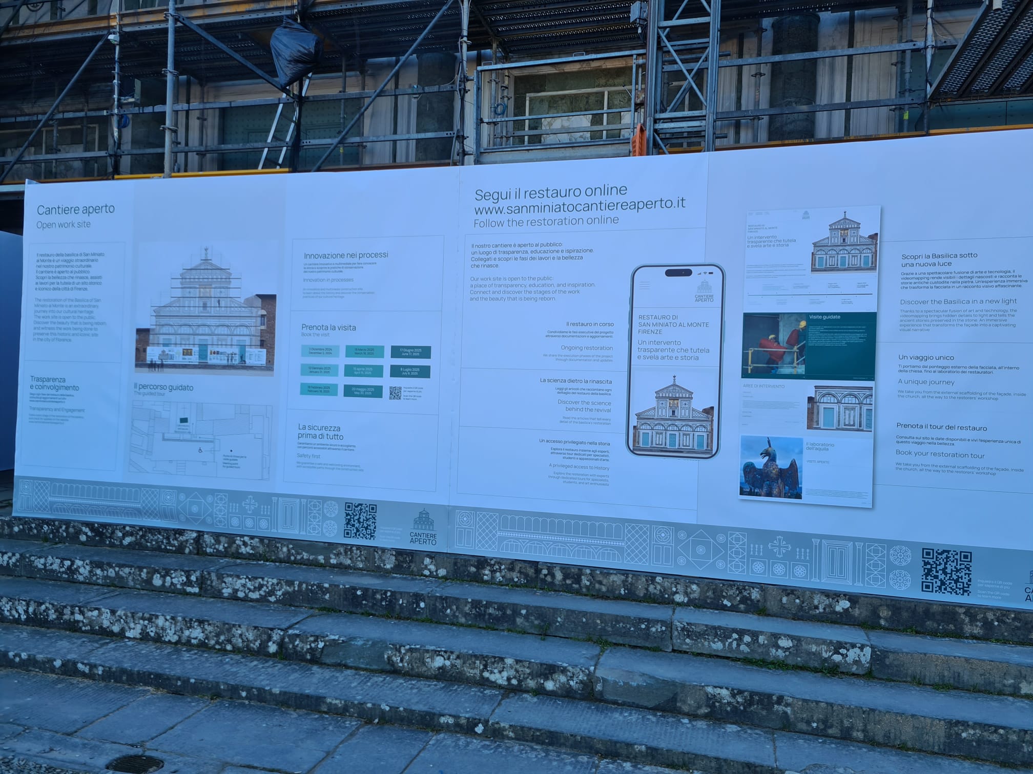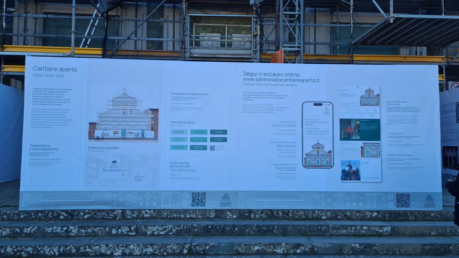 I lavori previsti sulla facciata della Basilica si concentrano su una serie di interventi per preservare e valorizzare la magnificenza delle superfici architettoniche, garantendo una protezione duratura contro il degrado. Le operazioni comprendono: delicate operazioni di pulitura e trattamenti biocidi per contrastare l’inquinamento e le patine biologiche; interventi di consolidamento superficiale, scelti con attenzione in base alla natura dei materiali e alle specifiche problematiche di degrado; stuccature e riadesioni di scaglie e frammenti per restituire compattezza e armonia alla struttura; restauro accurato degli elementi scultorei, del mosaico e delle lastre intarsiate, per restituire loro la bellezza originale; infine, l’applicazione di trattamenti protettivi per garantire una durabilità nel tempo, preservando l’integrità e la magnificenza della facciata. Questi interventi puntano a restituire alla Basilica il suo splendore senza compromettere la sua storicità, per fare in modo che rimanga un simbolo di bellezza e di fede per le generazioni future.