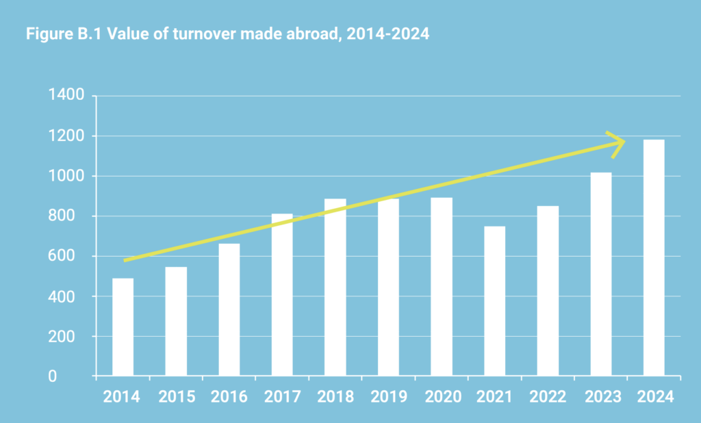 Nel 2023 le aziende italiane di settore hanno realizzato all’estero il 30% del loro fatturato, che quest’anno sfiorera i 1.200 milioni. La crescita si inserisce in un trend positivo negli anni nonostante la crisi della pandemia da Covid-19. Prevalgono le imprese private e quelle con più di 500 dipendenti, Africa e Asia le regioni più coinvolte nella presenza italiana