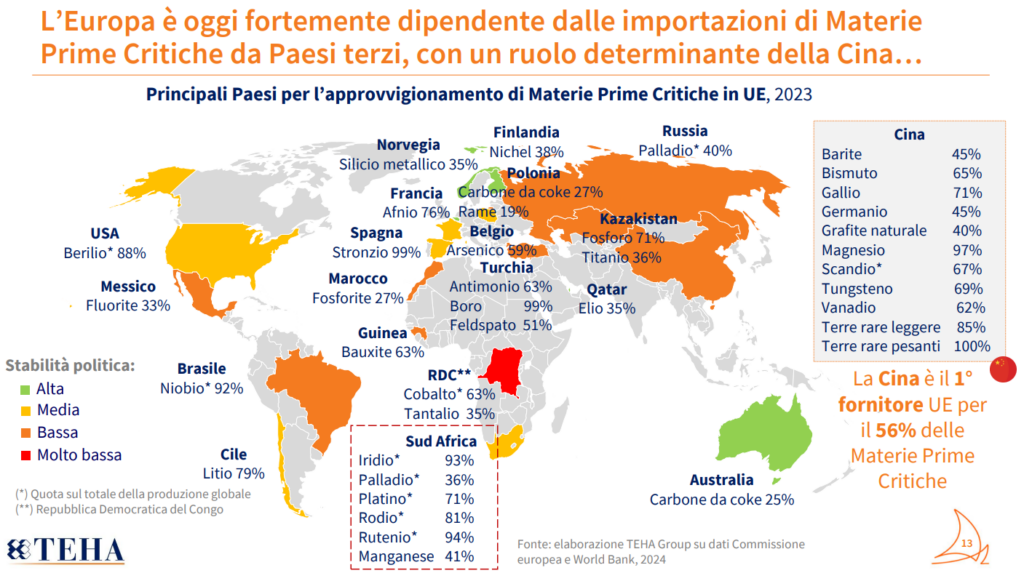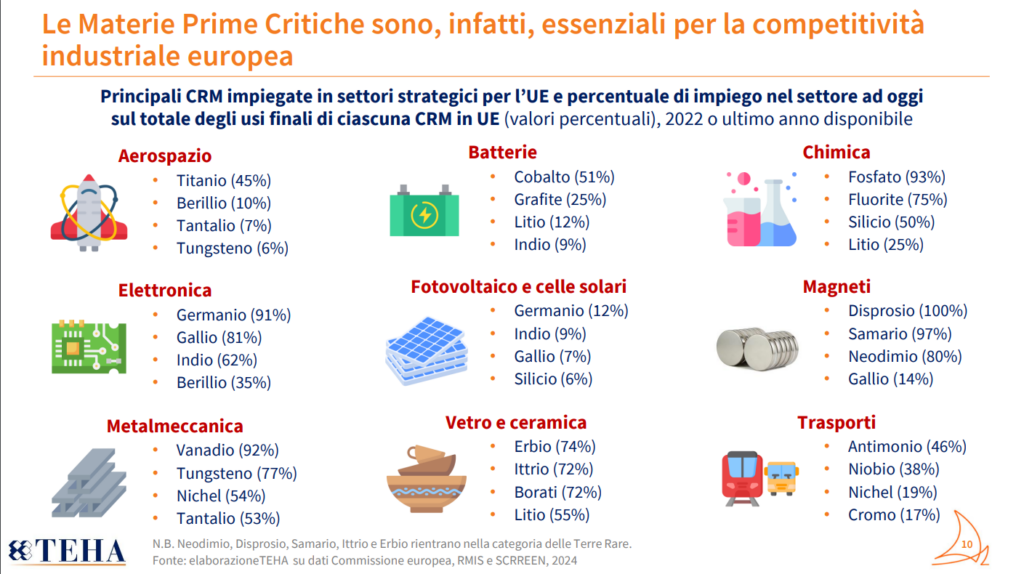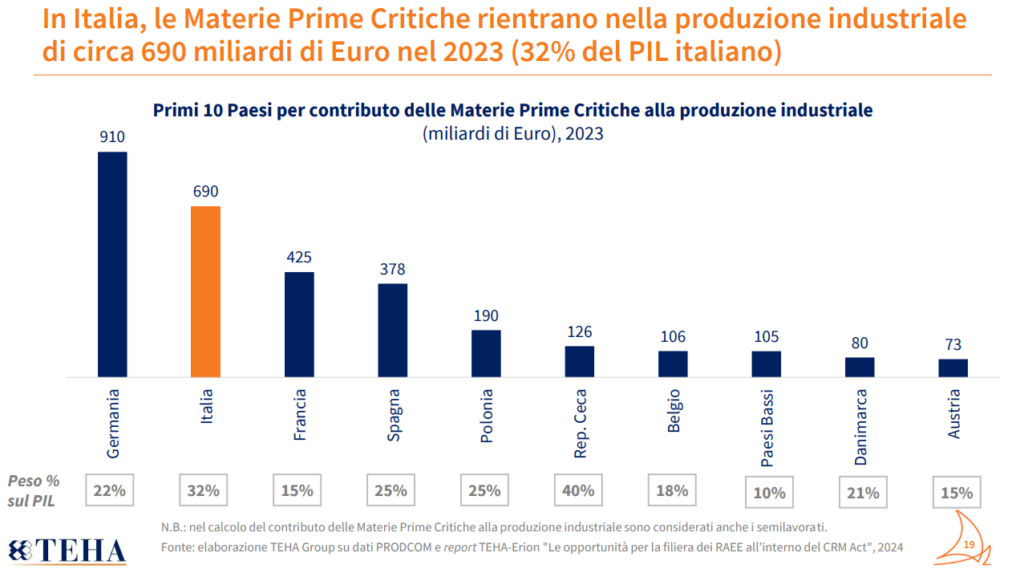 Con 1,2 miliardi di euro di investimenti, l’Italia può ridurre la dipendenza dall’estero per le materie prime critiche di quasi un terzo generando oltre 6 miliardi di euro di valore aggiunto per la filiera al 2040. Numeri grandi per una grande sfida che riguarda l’Italia e più nel complesso tutta l’Europa nel confronto con Stati Uniti e Cina. A metterli in fila in un nuovo studio sono stati il Gruppo Iren e il centro studi The European House – Ambrosetti (Teha).