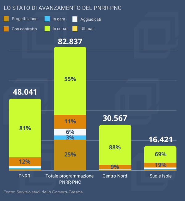 L’81% di infrastrutture strategiche Pnrr è già in CANTIERE (le opere Pnc-Fsc ferme al 19%)
