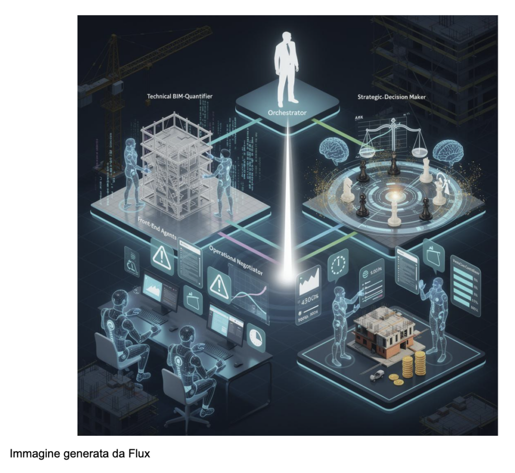 Per un’impresa di costruzioni, l’ecosistema agentico è una entità nella quale ogni agente svolge un ruolo specializzato, assume una memoria specifica e persegue obiettivi definiti.