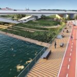 Ma soprattutto è stato elaborato un importante piano di integrazione paesaggistica con l’area circostante. Qui, a ridosso dei pilastri, nasceranno una serie di parchi, in alcuni casi di affaccio sul Tevere, sia sul lato di Ostia, sia sul lato di Fiumicino, collegati da una nuova rete di ciclovie che si collegherà a quelle esistenti. I parchi ospiteranno aree ed attrezzature dedicate allo sport (basket, canoa, skate park, fitness, arrampicata) e saranno infine riqualificati alcuni punti significativi come l’ambito di Tor Boacciana e la sentieristica lungo gli argini. Sono stati inoltre previsti: una ‘zona umida’ grazie alla vasca di laminazione integrata nel paesaggio, colline artificiali del viadotto e delle rotatorie, schermature arboree e arbustive, rigenerazione ambientale.